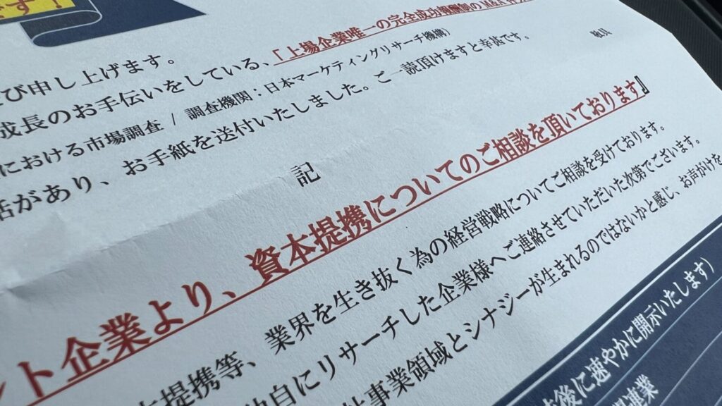 いくら資本入れてくれるのか聞いてみる?笑 (定期的にくるこの手紙。)
