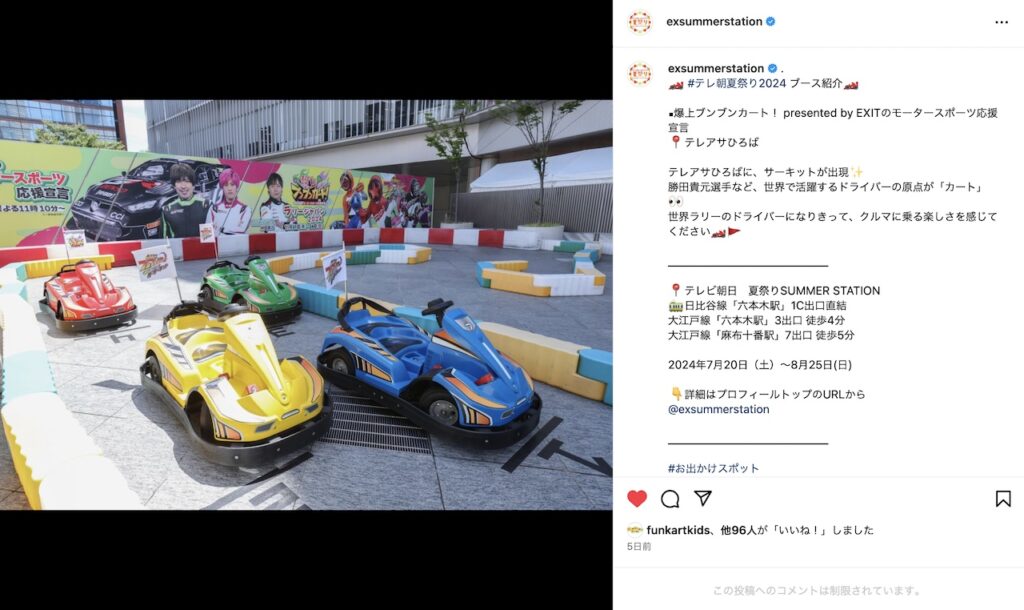 今年もテレビ朝日さんの六本木ヒルズ 夏祭り SUMMER STATIONに弊社のコンテンツでありますファンカートキッズEVを納品させて頂いております。ありがとうございます。