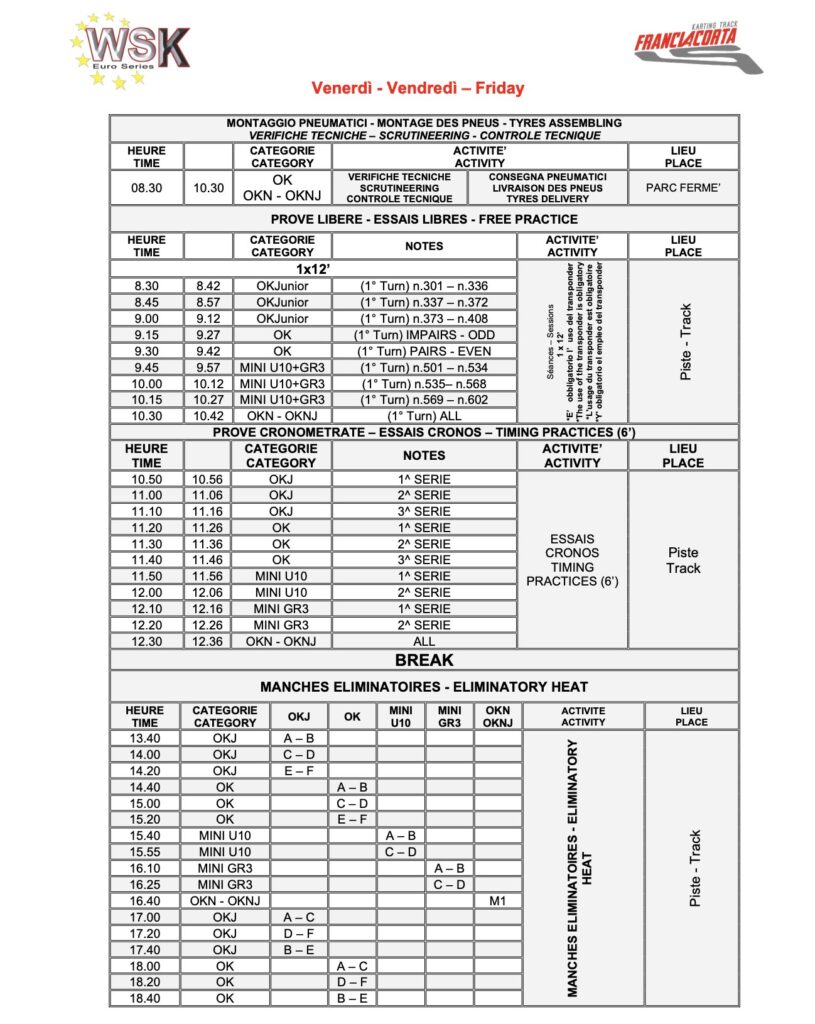 2023.09.01 2023.11.13 ゴーカート WSK EURO SERIES ROUND1 kazuto_shimoyama https://wskarting.it 甥っ子ハヤトの出場している海外レース WSK EURO SERIES ROUND1 MINI U10クラス 週末日曜日までのタイムスケジュール。時差-7時間 フリー走行 17:15〜(日本時間) TT 20:50〜 予選22時過ぎ〜ライブはあるのかな? 有るようだったらクイック羽生でパブリックビューイングやろー。 #iame#italy#イタリア#クイックレーシングチーム