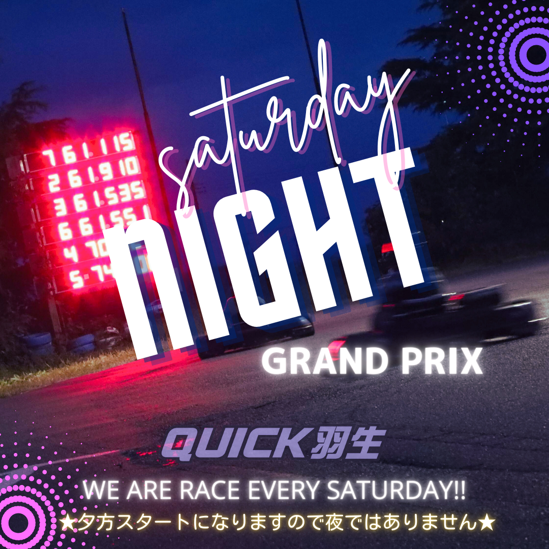 クイック羽生とクイック水戸で毎週土曜日の夕方に開催されているゴーカートレースイベント Saturday night GP